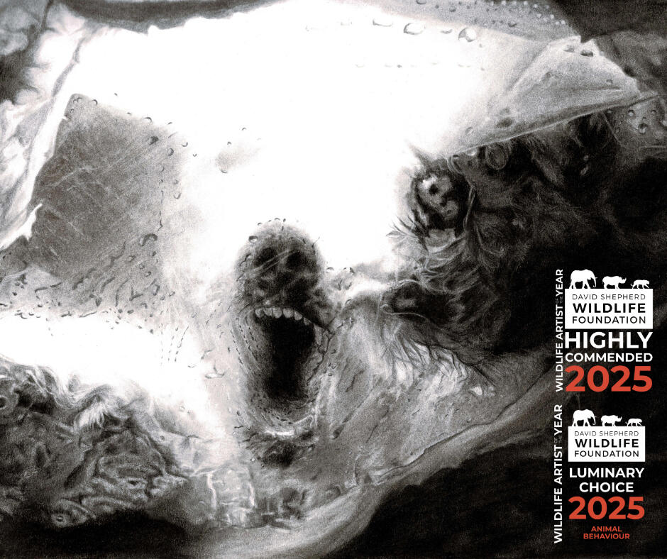 ON THIN ICEA3 charcoal on paper. Polar bear hunting on the Arctic ice. Finalist in the David Shepherd Wildlife Foundation competition 2025. Winner of two awards 'Luminary Choice' and 'Highly Commended'.£395, unframed. £495 framed (including delivery). Please get in touch to purchase.